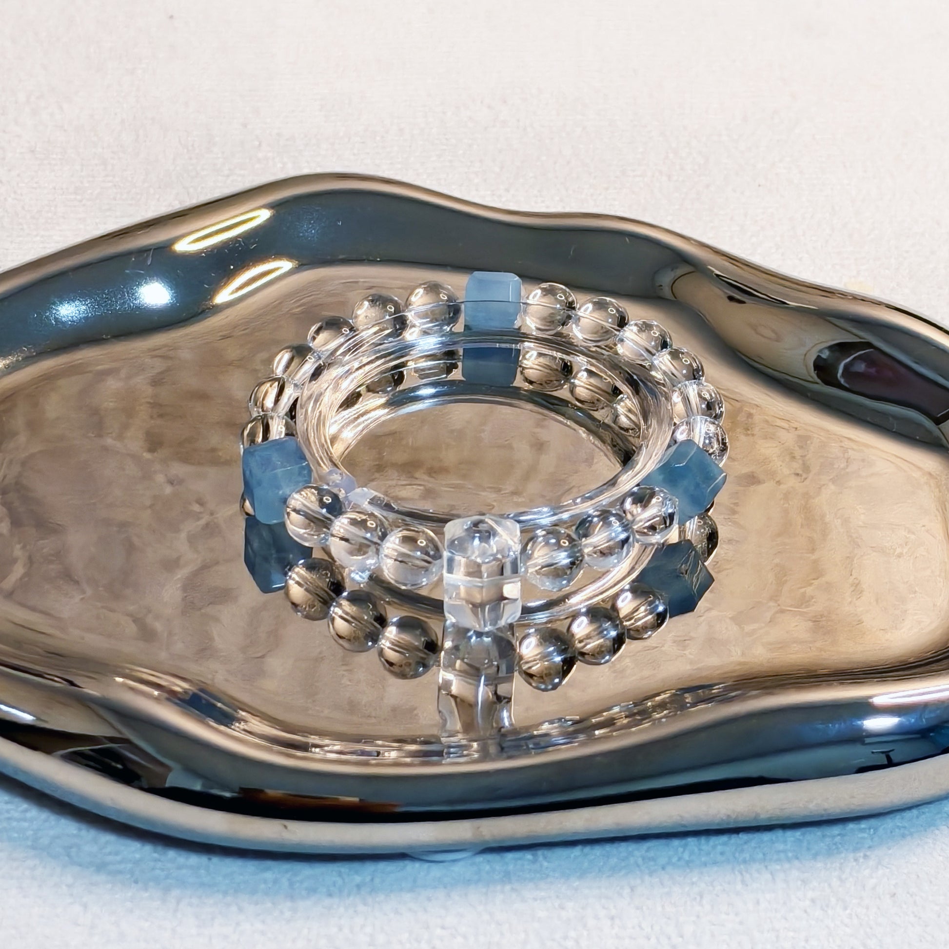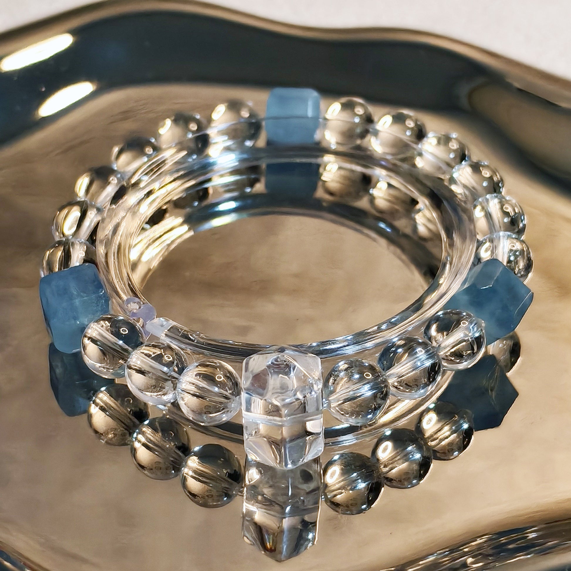 Natural Clear Quartz & Aquamarine Bracelet, Crystal Jewelry for Women, Unique Design Spiritual Accessory